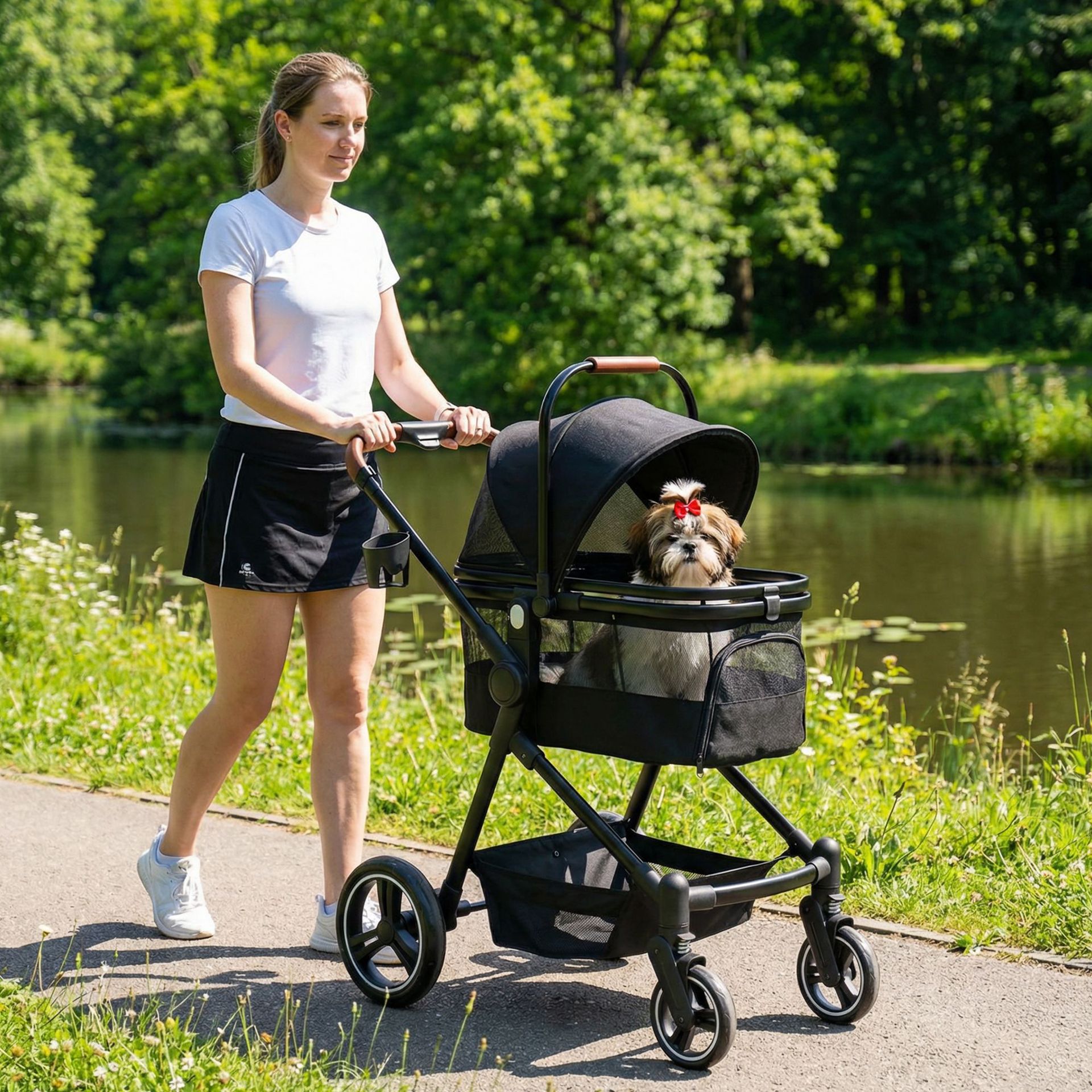Troli Hewan Peliharaan Dua Tingkat Troli Bayi Anjing Kucing Teddy Troli Hewan Peliharaan Luar Ruangan Ringan Bisa Dilipat