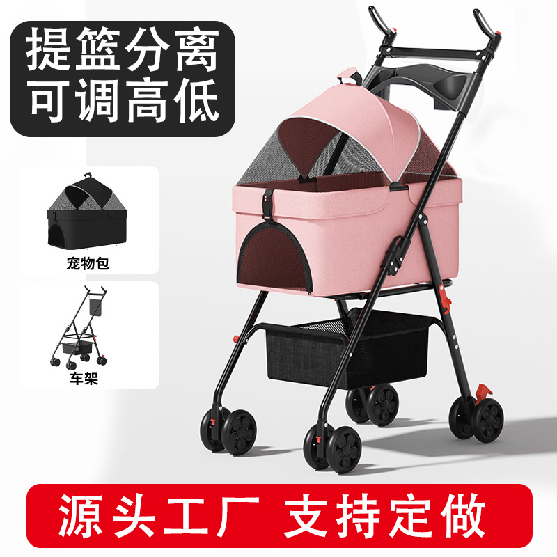 Kereta bayi kucing peliharaan terpisah, mobil hewan peliharaan satu klik lipat dapat dilepas dan dapat dicuci, anjing kecil besar