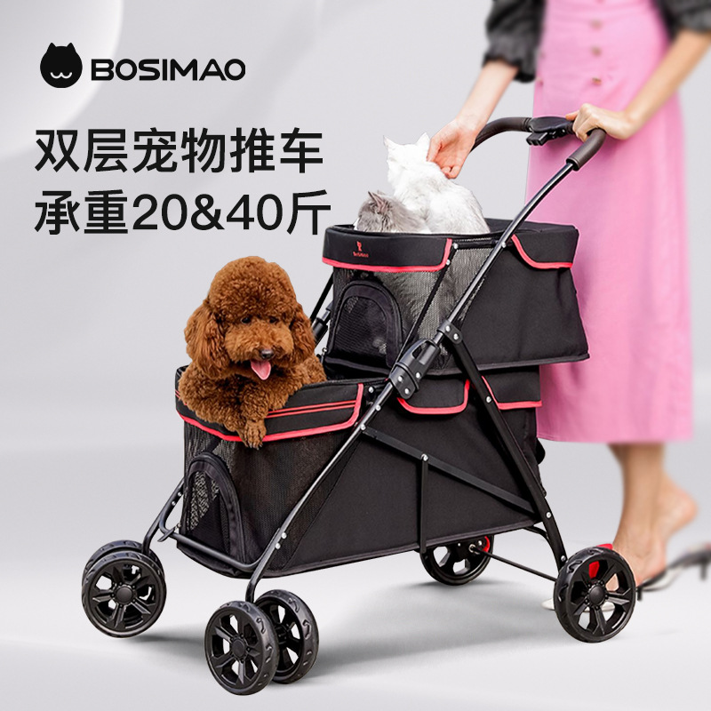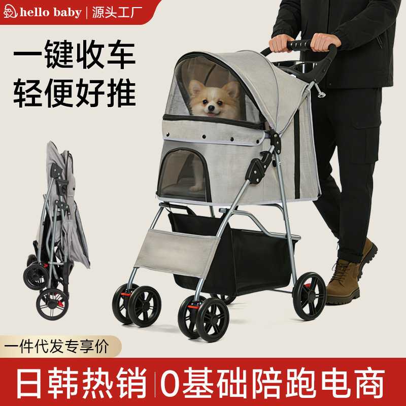 Dua Tingkat Hewan Peliharaan Trolley Keluar Ringan Lipat Anjing Kucing Lintas Batas Grosir Kecil Hewan Peliharaan Luar Ruangan Trolley