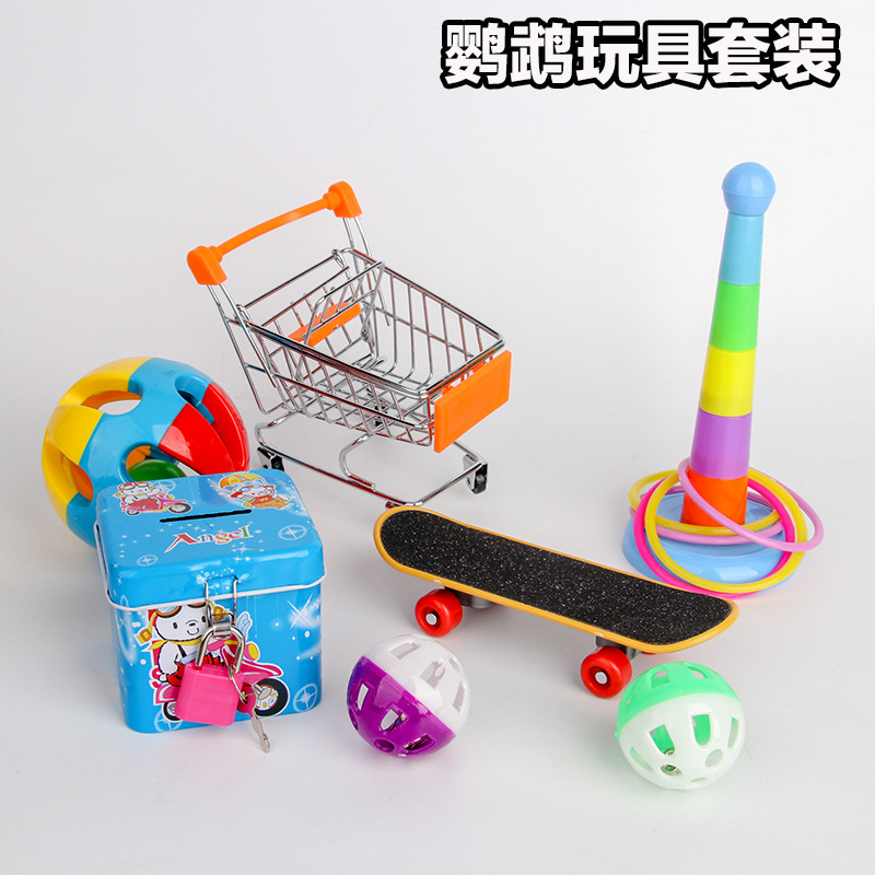 Setelan mainan burung nuri baru lintas batas kereta dorong skateboard bola latihan edukasi perlengkapan mainan 7 buah