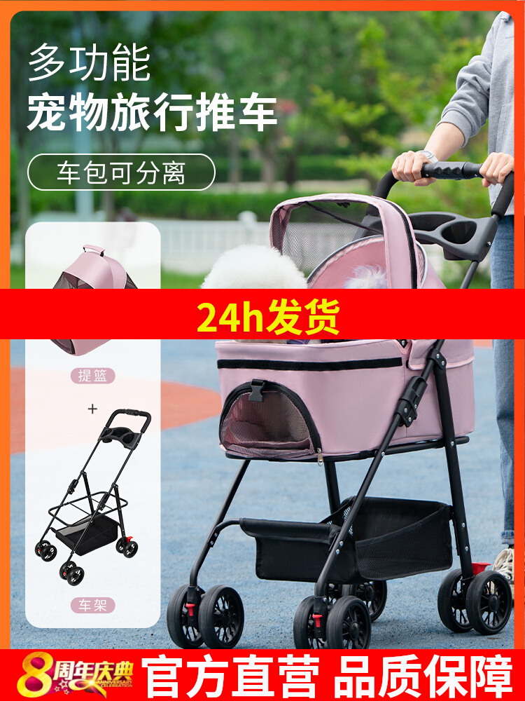 Kereta dorong keluar hewan peliharaan, kereta dorong anjing kucing kecil dan sedang ringan dapat dilipat terpisah bepergian luar ruangan