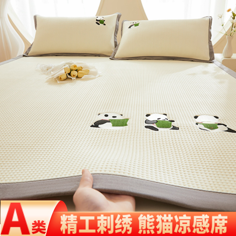 Tipe A Mats Es Musim Panas Dingin Tipe Ibu dan Bayi Saring Kacang Es Set Tiga Potong Alas Tempat Tidur Sutra Es Model Musim Panas Alas Lembut AC 3