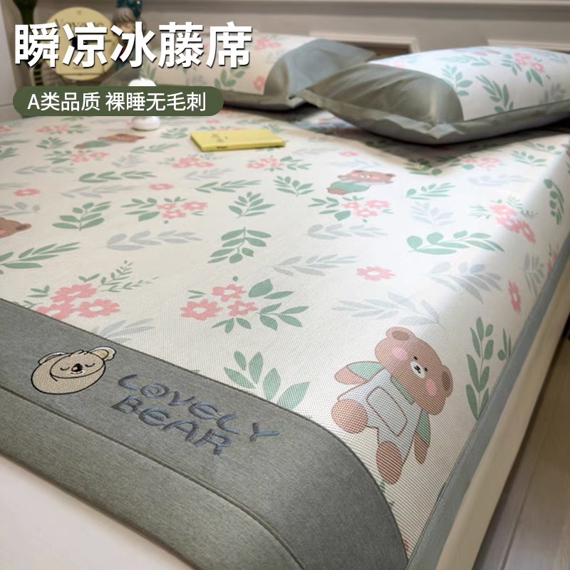 Tikar sutra es Kelas A, tiga potong tikar rotan musim panas, tikar bambu, tikar musim panas dapat dicuci, Tikar jerami rumah tangga dipasang lembar Tunggal 3