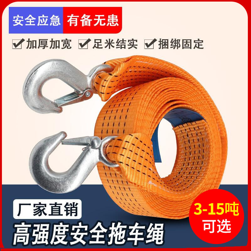 Tali derek kendaraan off-road poliester kekuatan tinggi tali traksi mobil tali derek penyelamatan dipertebal tali rem kait ganda tali mobil tahan aus
