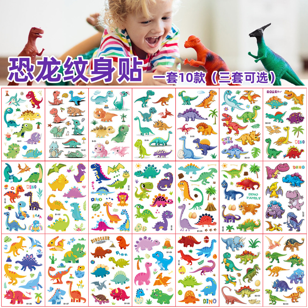 Stiker tato dinosaurus, stiker tato anti air kartun anak-anak, stiker tato hewan dinosaurus