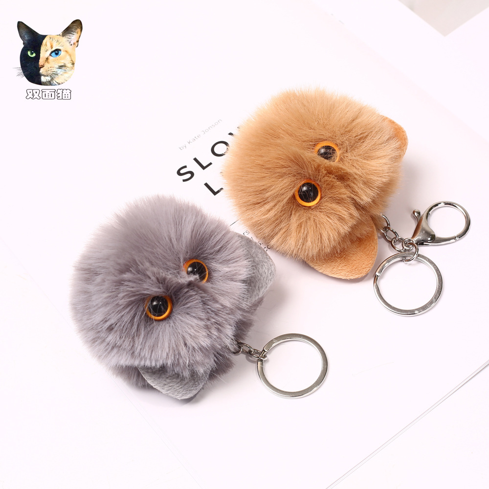 可爱毛绒猫头钥匙扣女可爱猫咪汽车钥匙链书包包挂件玩具创意礼品