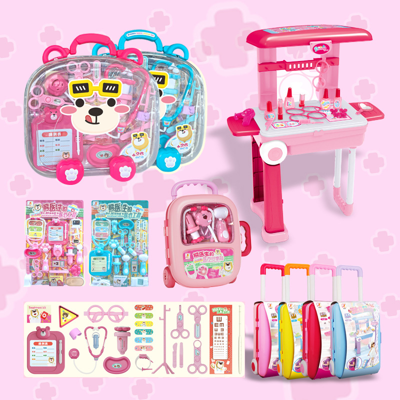 Aksesori Dokter Anak-anak Set Mainan Strip Koper Perjalanan Peralatan Medis Peralatan Rumah Tangga Jarum Lampu Stetoskop Pria dan Wanita