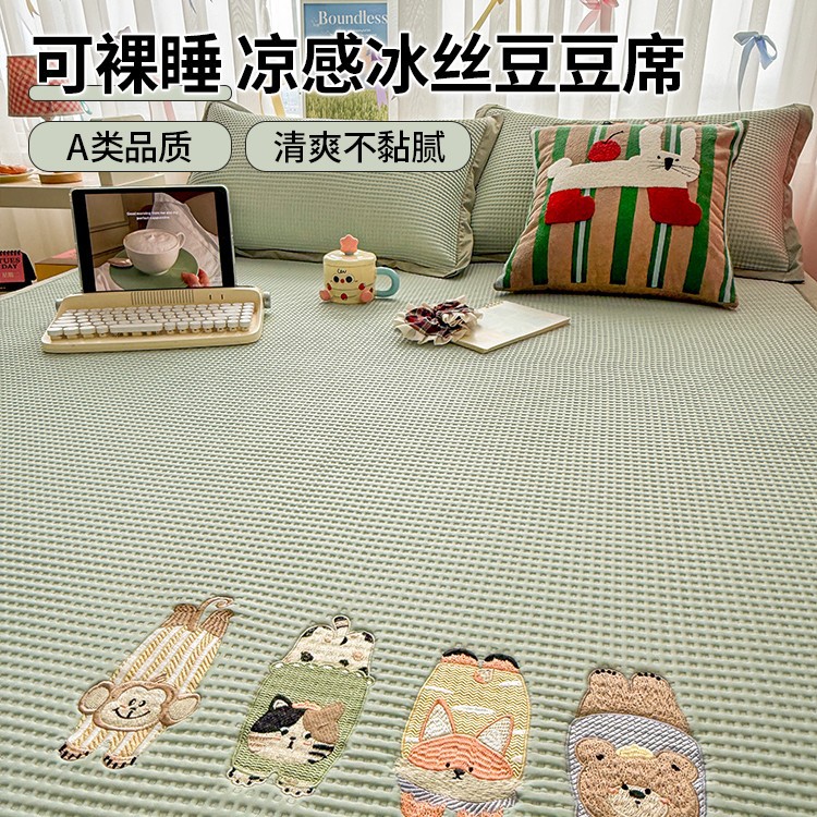 Setelan Tiga Potong Sarung Es Kartun Keset Kacang Kacang Es Anak-anak Musim Panas Sprei Rasa Dingin Sprei Lembut AC Rumah