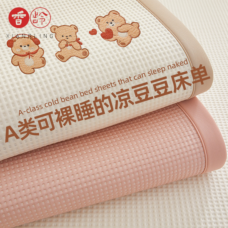 Tipe A Seprai Kacang Dingin Kelas Ibu dan Anak Seprai Sutra Es Seprai Seprai Tiga Potong Musim Panas Siswa Asrama Siswa dengan Tikar Lunak Tunggal