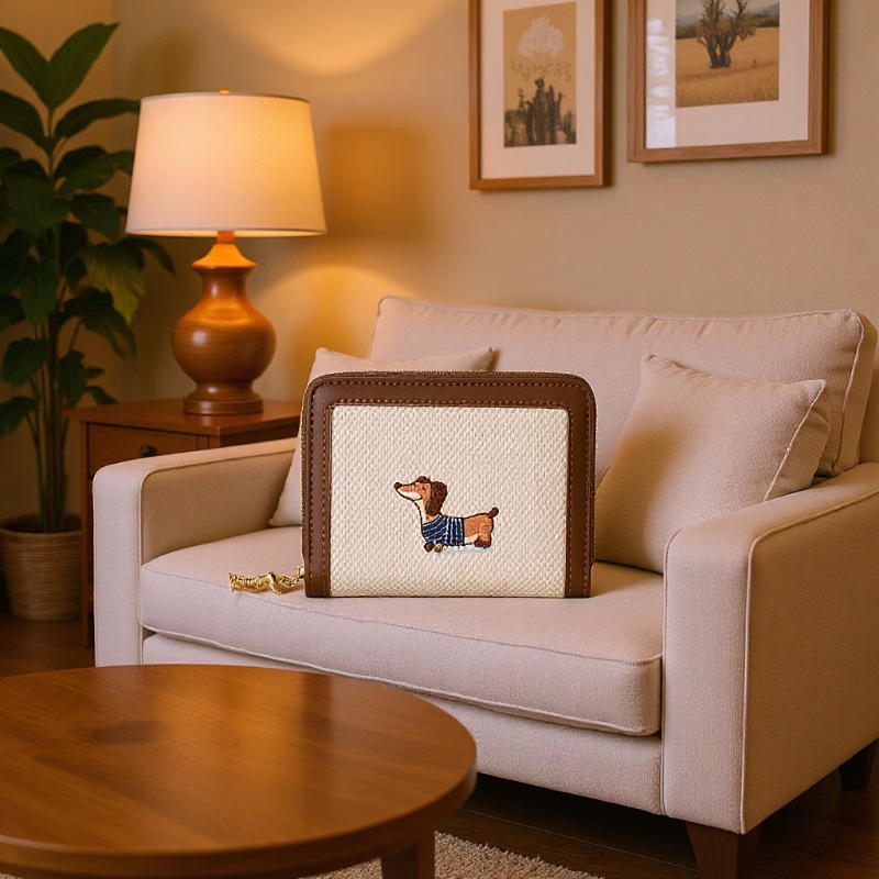 Dompet Uang Receh Wanita Model Pendek Lipat Dua Lipat Ritsleting Anak Anjing Kartun Bordir Model Baru Dini