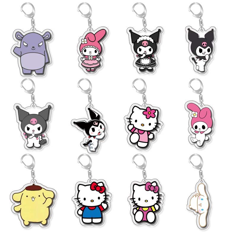 Sanrio Sanrio yukui gantungan kunci anjing akrilik, tas sekolah liontin ornamen mobil lucu gadis