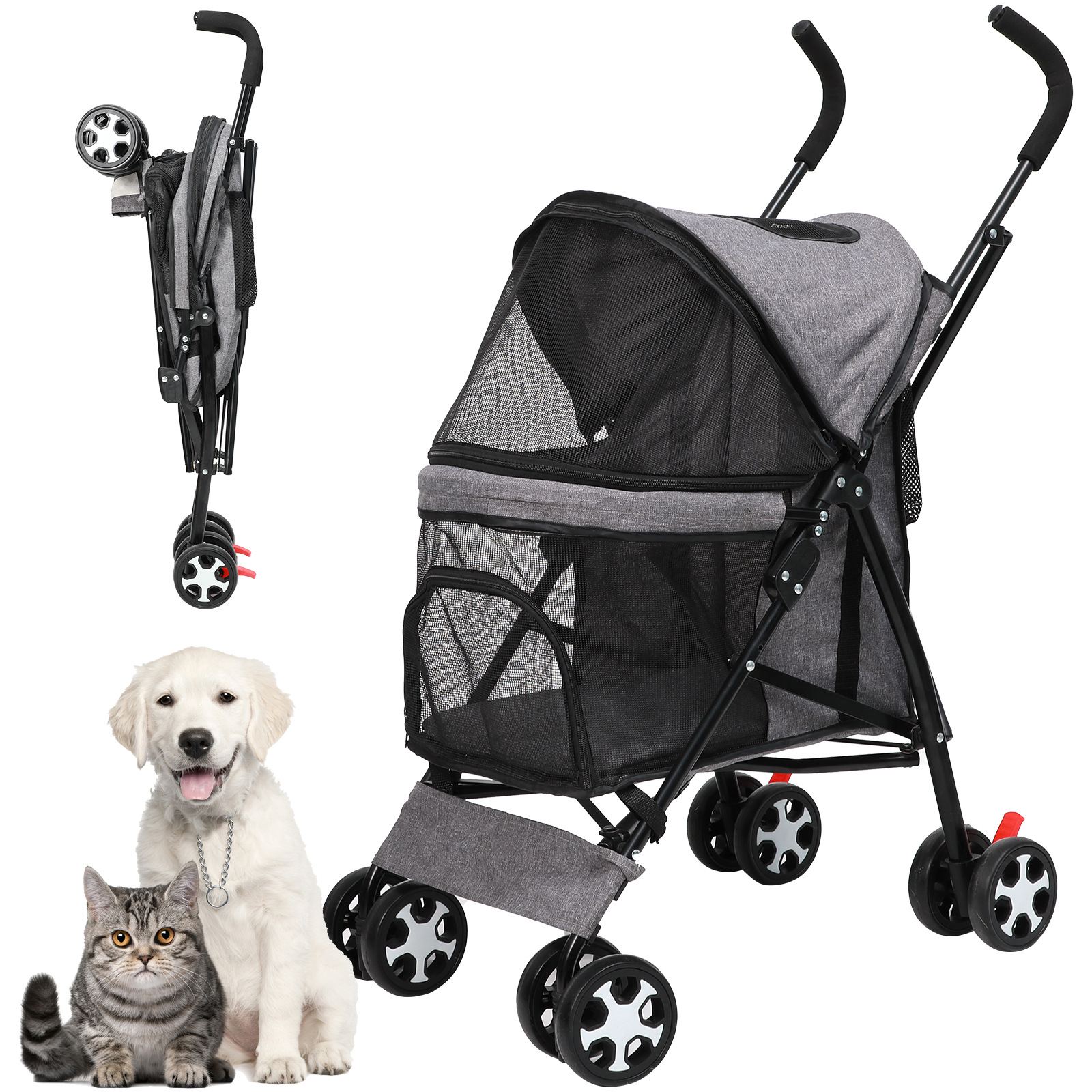 Amazon kereta dorong hewan peliharaan lintas batas tas kucing mobil anjing berjalan dapat dilipat skuter hewan peliharaan bersirkulasi