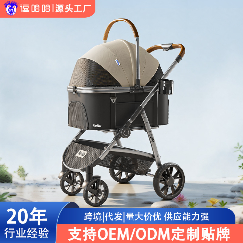 Bello Kereta Dorong Hewan Peliharaan Model Baru Ruang Besar Kereta Dorong Hewan Peliharaan Anjing Kucing Keluar Kereta Dorong Kucing Anjing Lipat Terpisah