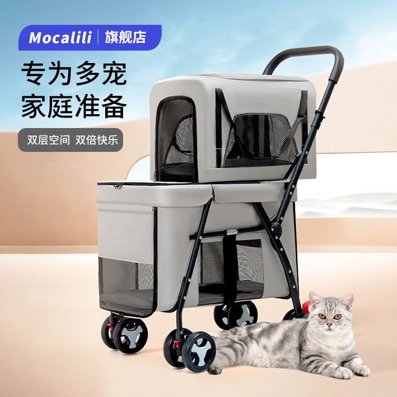 Mocalili Troli Hewan Peliharaan Dua Tingkat Troli Luar Ruangan Portabel Bisa Dilipat Ringan