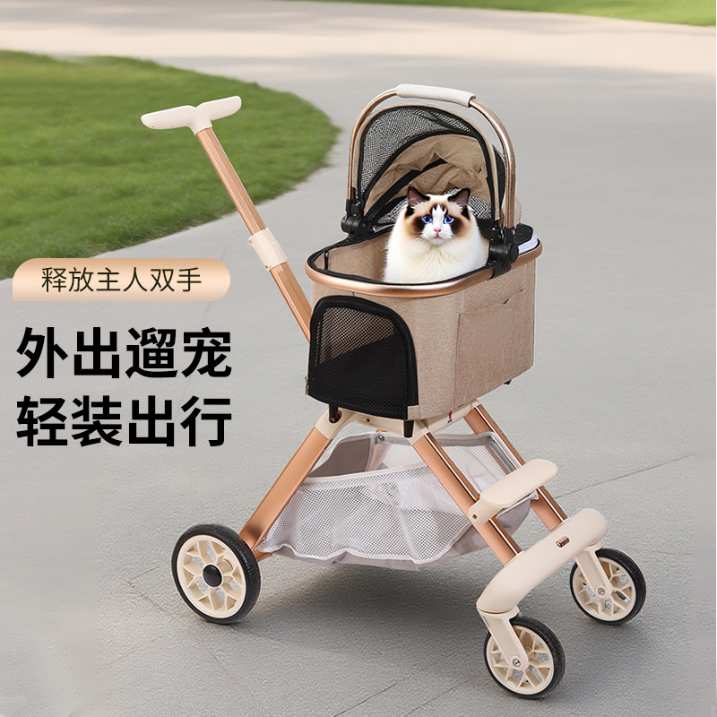 Kereta dorong anjing peliharaan lipat, kereta dorong anjing peliharaan ringan kucing berjalan mobil anjing bernapas empat-roda