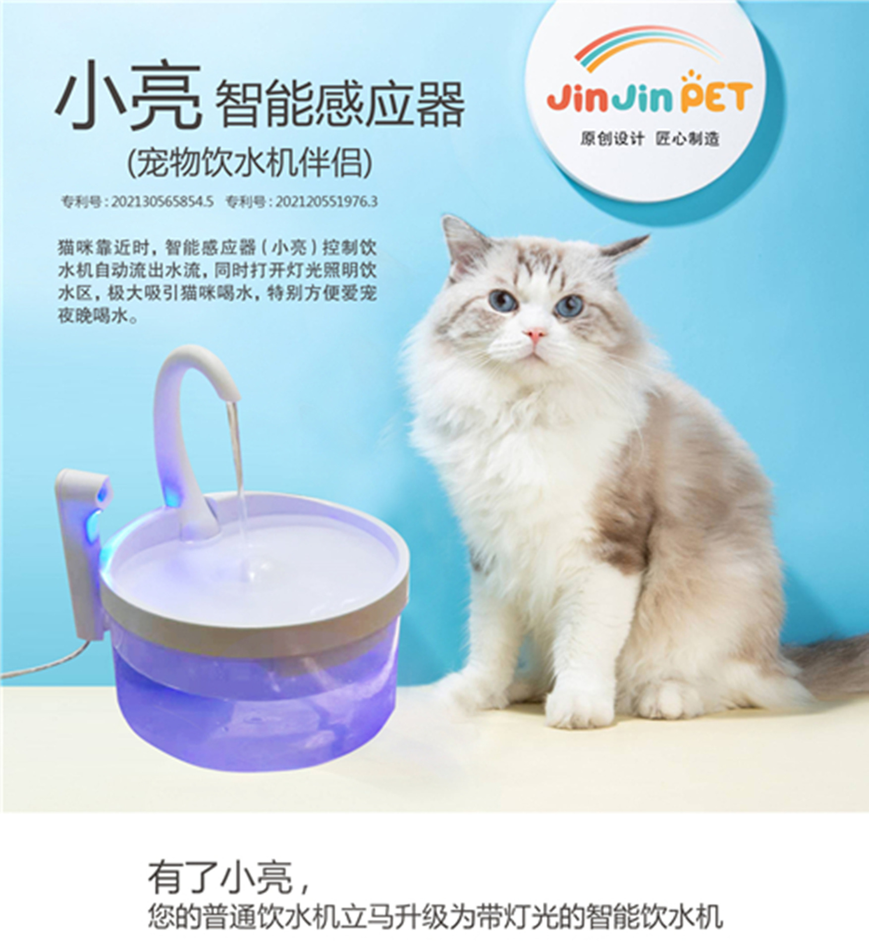 Dispenser air hewan peliharaan lintas batas, dispenser air hewan peliharaan cerdas otomatis senyap lampu malam bercahaya LED anti-kering