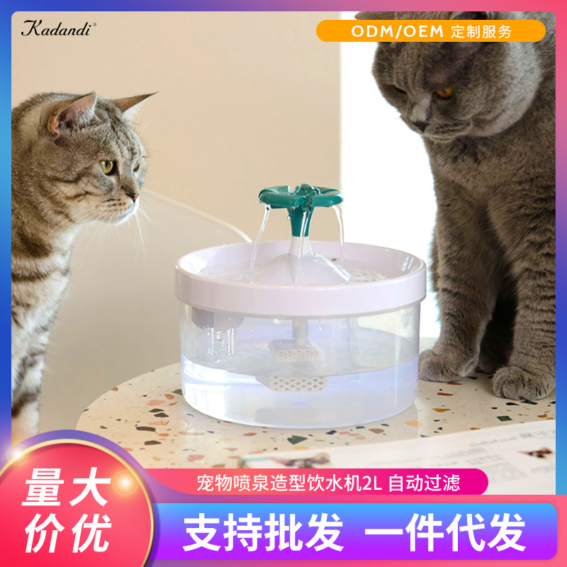 Dispenser air hewan peliharaan 2L cerdas, dispenser air bunga kecil, filter loop, mesin air langsung kucing, eksklusif lintas batas