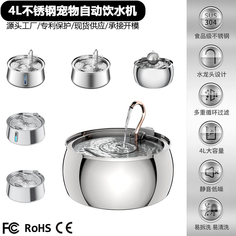Amazon SUS304 Stainless Steel Dispenser Air Otomatis Hewan Peliharaan 4L Pengumpan Air Kucing Kapasitas Besar Dapat Jendela