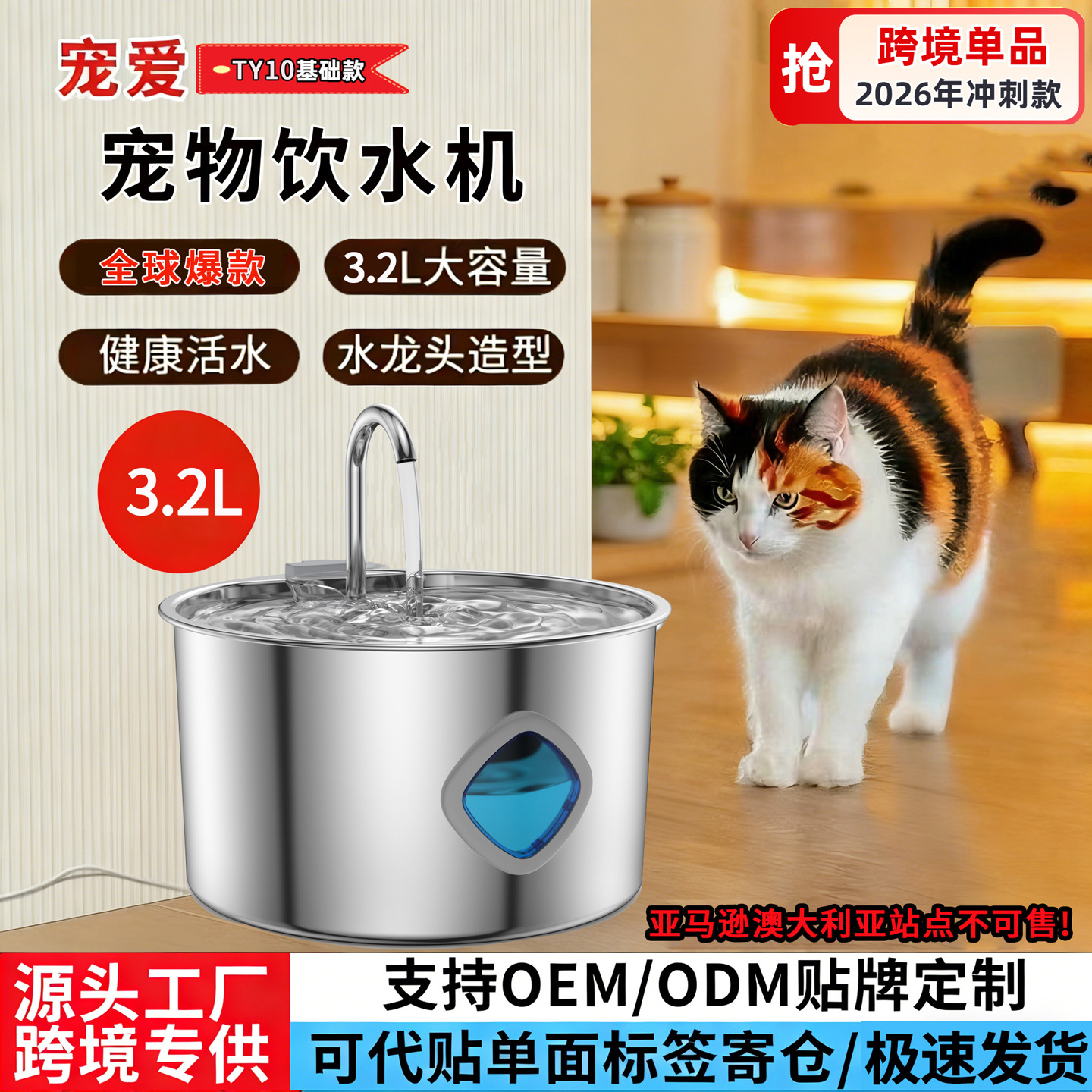Manjakan Dispenser Air Cerdas Lintas Batas 3.2L Semua Stainless Steel Filter Hewan Peliharaan Peredaran Otomatis Pengumpan Anjing Kucing