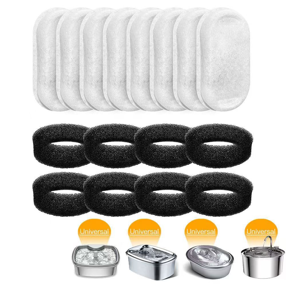 Dispenser air hewan peliharaan, filter hitam dan putih potongan kucing dan anjing aksesoris perlengkapan hewan peliharaan filter karbon aktif katun