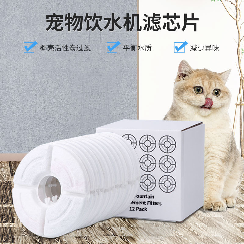 Baru 12 buah dispenser air hewan peliharaan bulat filter inti pengumpan air karbon aktif filter resin katun universal dalam kotak