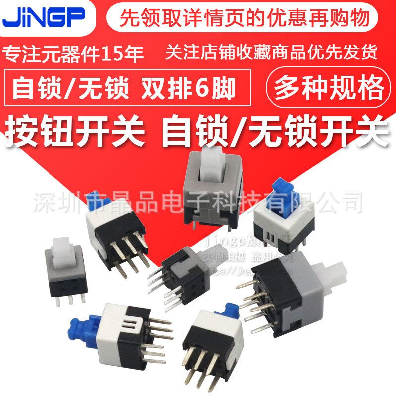 Sakelar penguncian otomatis/tidak mengunci sendiri 5.8*5.8 7*7 8*8 8. 5x8.5mm sakelar tombol enam kaki tanpa kunci