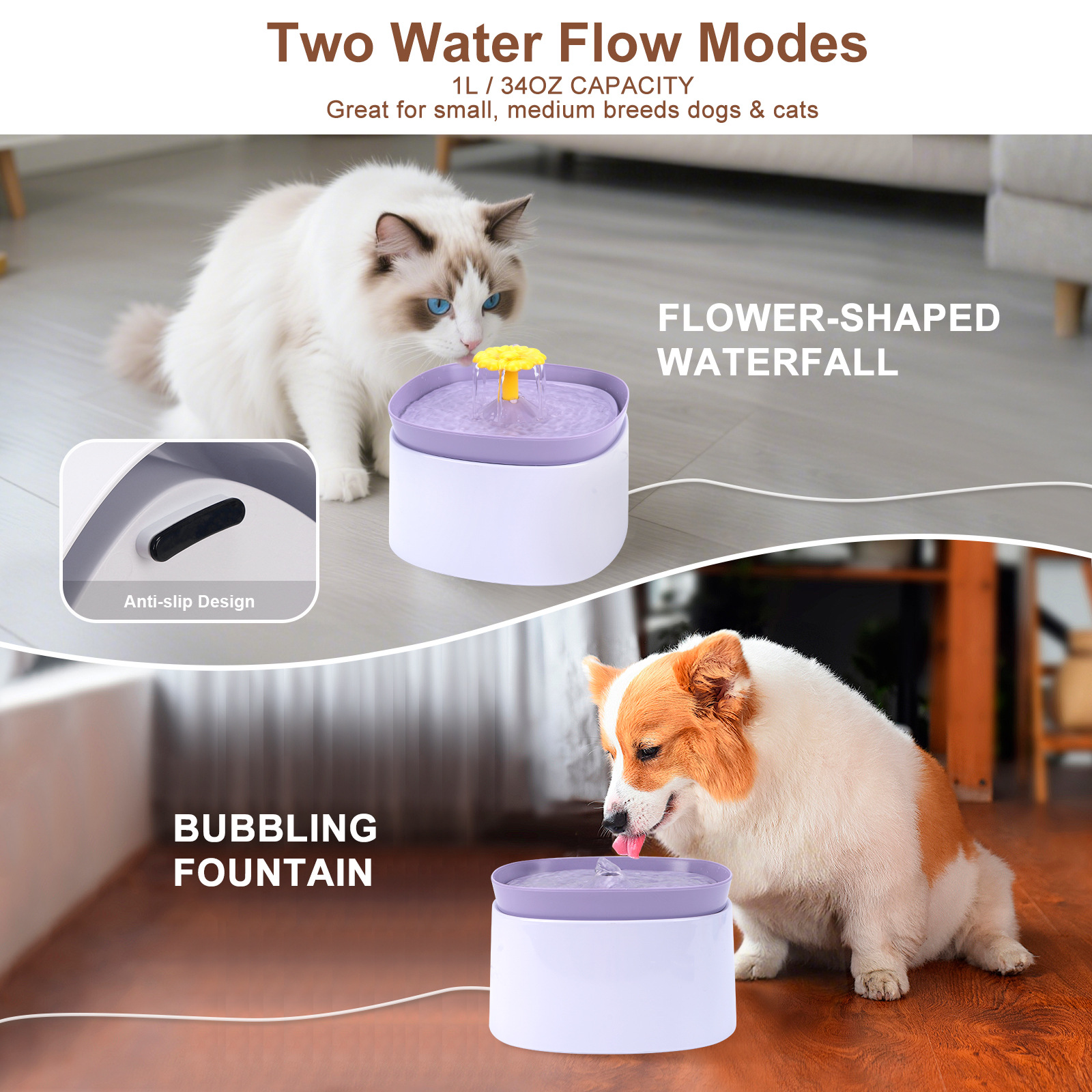 Amazon dispenser air hewan peliharaan, perlengkapan kucing dan anjing minum pintar dan memberi makan perangkat penyaring air kapasitas besar dispenser air hewan peliharaan