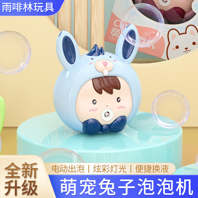 Douyin mesin gelembung kelinci peliharaan lucu populer lampu musik otomatis kartun elektrik mainan anak-anak gelembung meniup