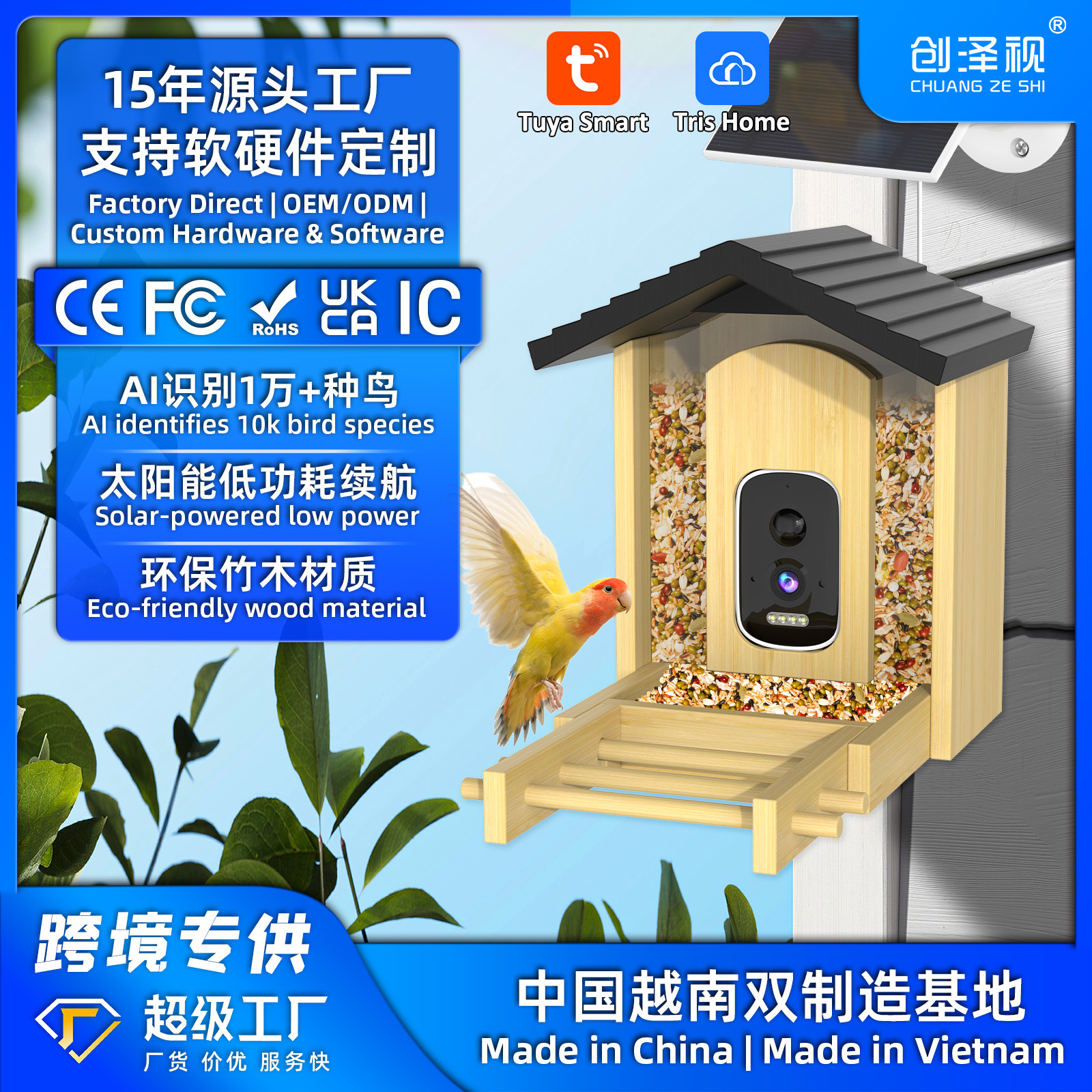 Sumber Pabrik Kayu Bambu Cerdas Pengumpan Burung AI Mengidentifikasi 5MP Tinggi Pixel Pengumpan Burung Perdagangan Luar Negeri Lintas Batas Model Ledakan