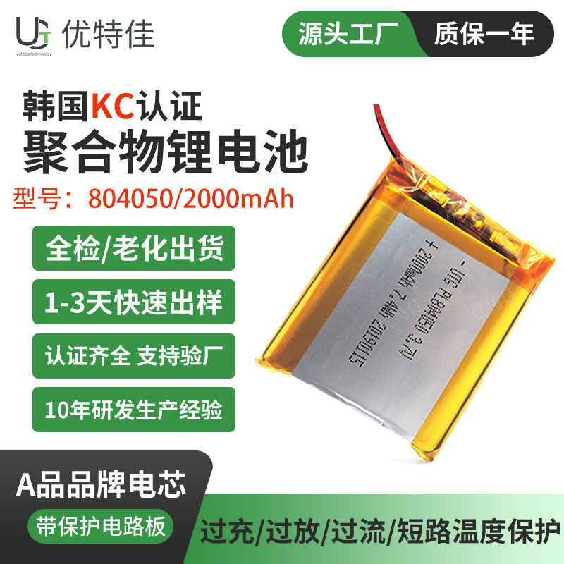 KC sertifikasi 804050 baterai lithium polimer 3.7V 2000mAh kaus kaki pemanas sarung tangan syal baterai