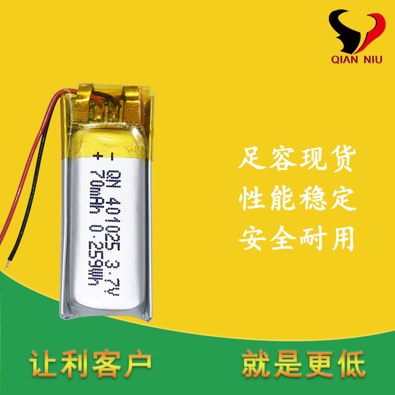 Baterai lithium polimer 401025 70mAh headset Bluetooth 3.7V pena perekam titik baca baterai mainan kecil