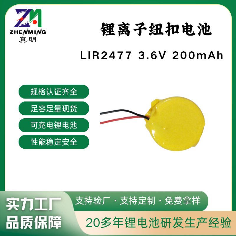 LIR2477 baterai tombol Timbal baterai industri baterai isi ulang 3, 6v200mah tombol lithium ion baterai