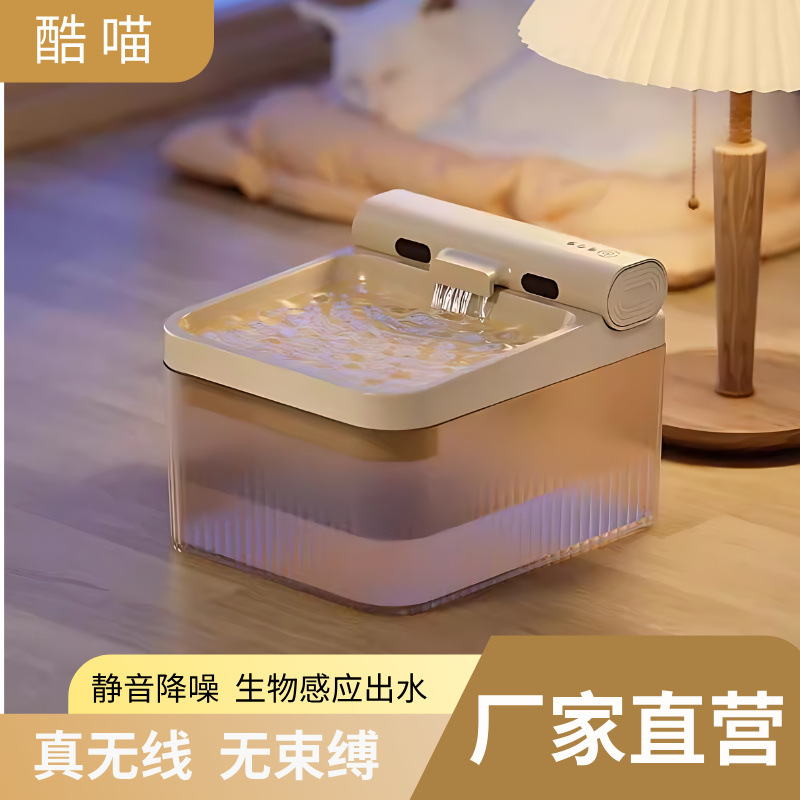 Grosir Hewan Peliharaan Dispenser Air Nirkabel Tidak Terpasang Cerdas Kapasitas Besar Otomatis Filter Induksi Pengisian Daya Minuman Kucing Lintas Batas