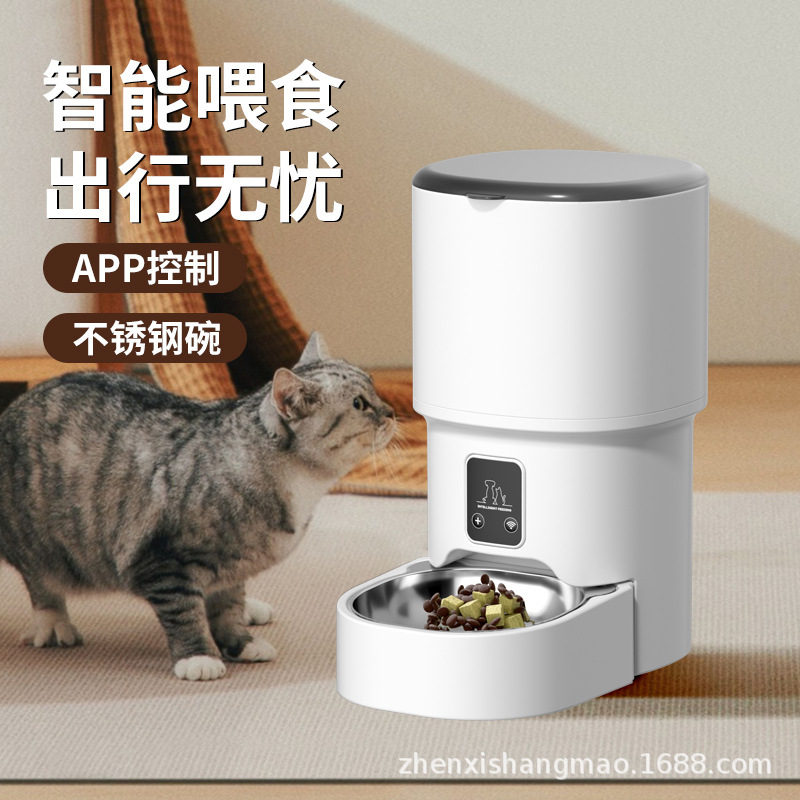 Pemberi makan otomatis hewan peliharaan, kapasitas 4L dengan tombol tipe aplikasi Meow star pemberi makan hewan peliharaan