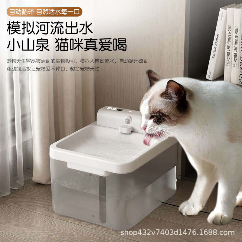 Dispenser air hewan peliharaan pintar nirkabel, dispenser air kucing induksi otomatis sirkulasi suhu konstan kucing dan anjing dispenser air otomatis