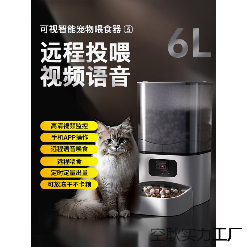 Alat Pengumpan Otomatis Kucing Anjing Alat Pengumpan Kuantitatif Waktu Cerdas Hewan Peliharaan Kucing Mesin Pengumpan Makanan Kucing dan Anjing Dapat Video