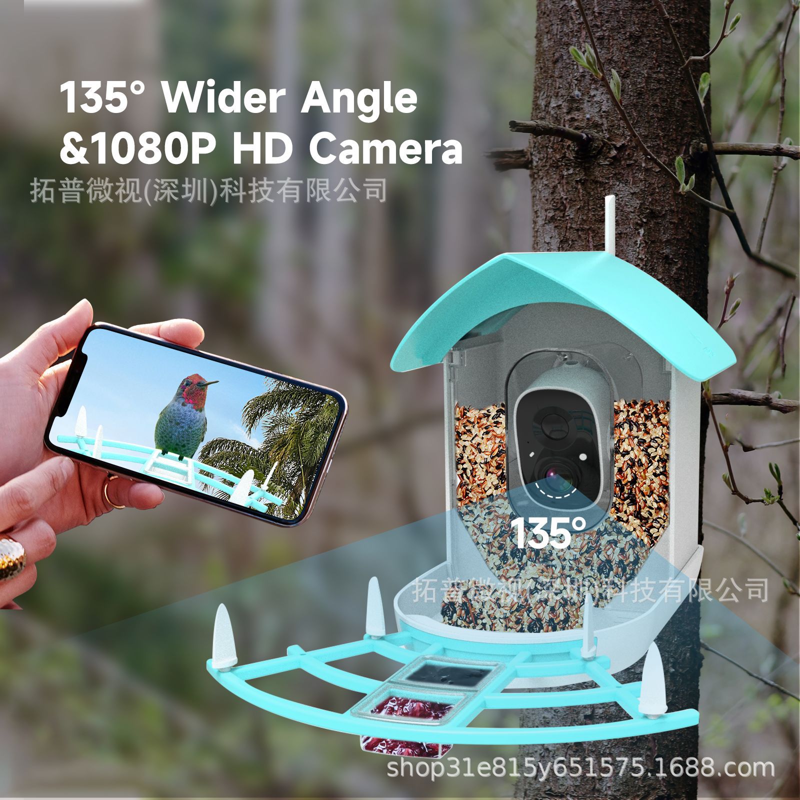 Kamera pemantau burung AI pintar lintas batas, pengumpan burung otomatis bertenaga surya, tahan air untuk luar ruangan.
