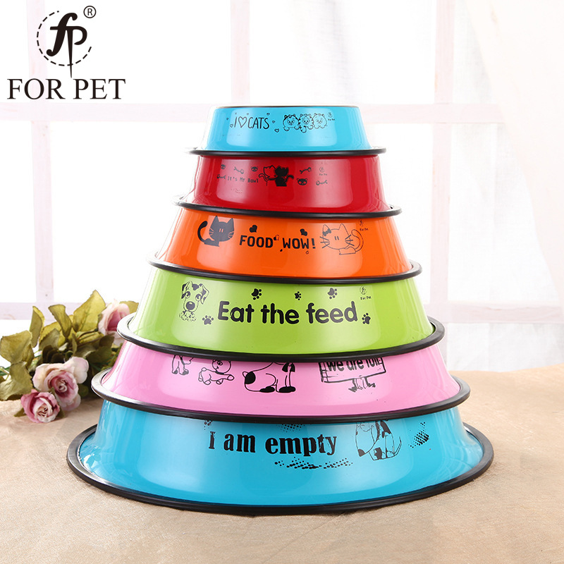 Anti selip mangkuk hewan peliharaan stainless steel, mangkuk hewan peliharaan cetakan warna kartun, mangkuk anjing anjing, pabrik peralatan makan anjing