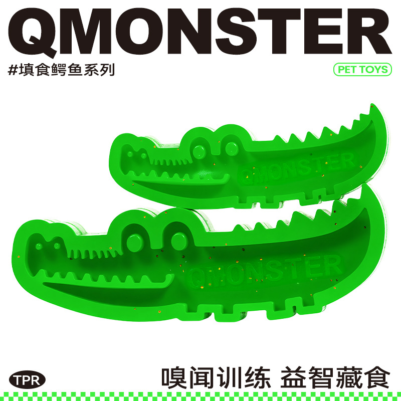 Qmonster mainan puzzle gigitan molar buaya, mainan ukuran anjing kucing bocor makanan