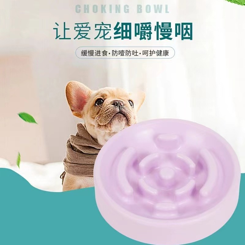 Mangkuk makanan lambat hewan peliharaan, anti-jatuh mangkuk makanan lambat untuk anjing kecil dan sedang mangkuk kucing dan anjing bulat Anti ketukan kucing anjing mangkuk makanan lambat