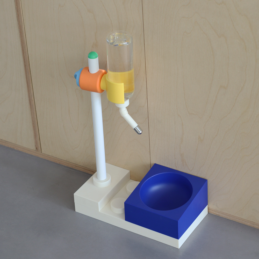 Dispenser air hewan peliharaan, tempat duduk tunggal mangkuk makanan anjing dispenser air kucing tinggi dapat disesuaikan