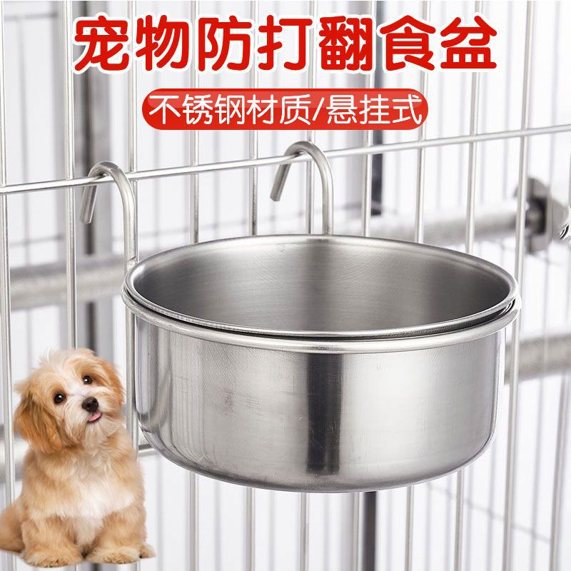 Stainless Steel Kandang Anjing Menggantung Mangkuk Makanan Mangkuk Air Tetap Baskom Air Tipe Gantung Anti Jatuh Baskom Makanan Anjing Baskom Makanan Hewan Peliharaan