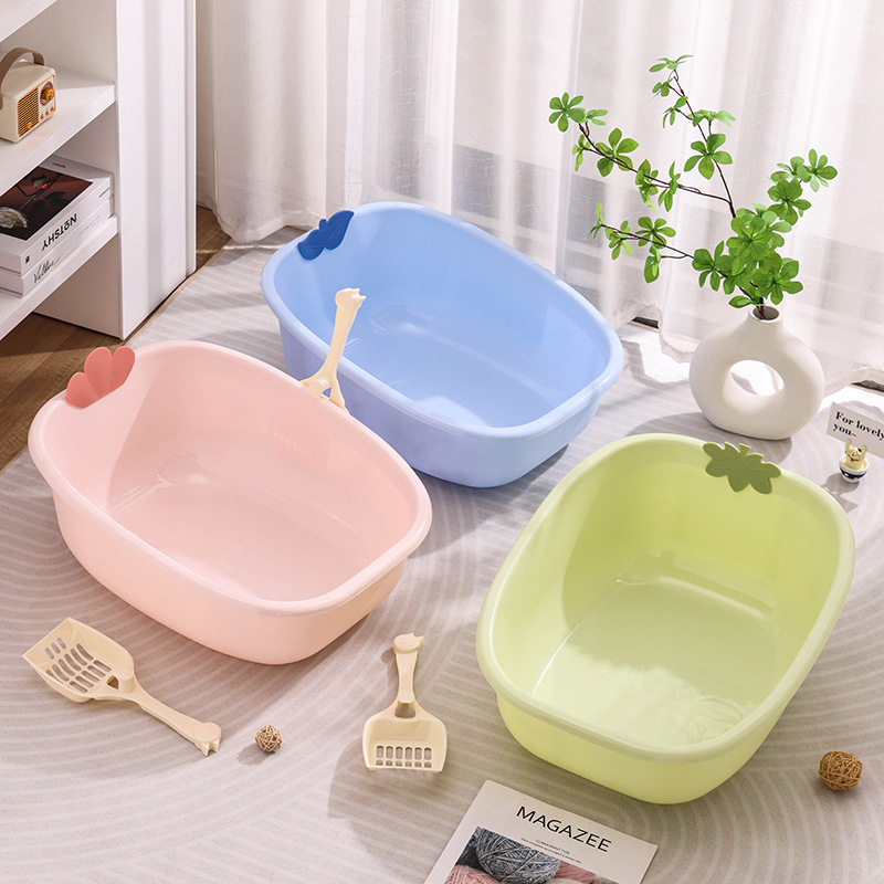 Baskom Kotoran Kucing Terbuka Asli Baskom Pasir Kucing Anti Lempar Ukuran Besar Toilet Khusus Ekstra Tebal Memperdalam