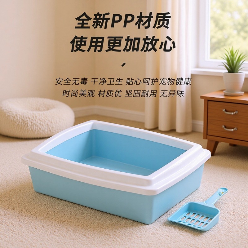 Langsung dari pabrik, kotak pasir kucing ekstra besar, toilet kucing anti cipratan, kotak pasir kucing ekstra besar tipe terbuka untuk anak kucing