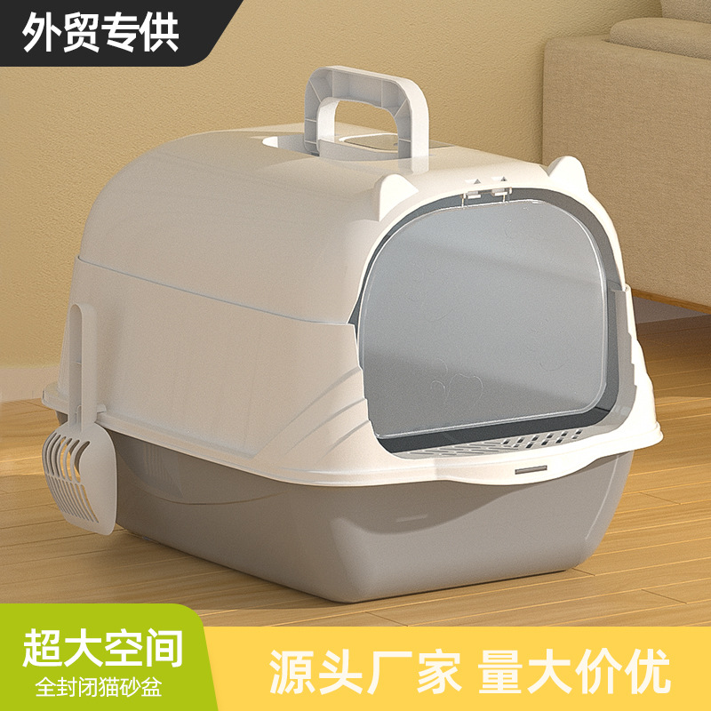 Kotak kotoran kucing tertutup penuh anticipratan besar toilet kucing dengan pegangan tutup kotak sampah kucing grosir pabrik