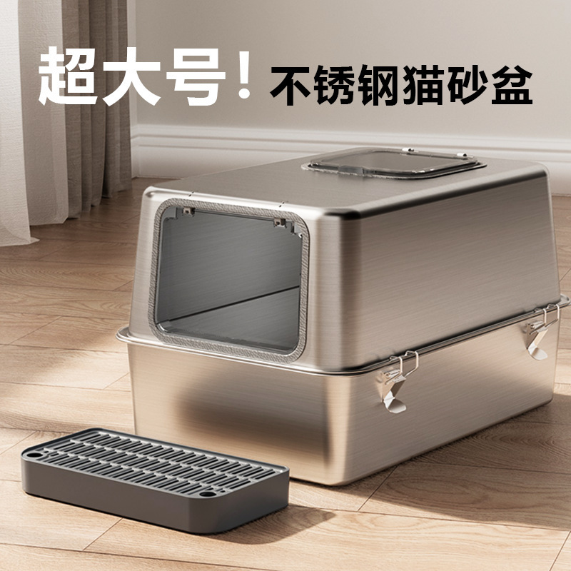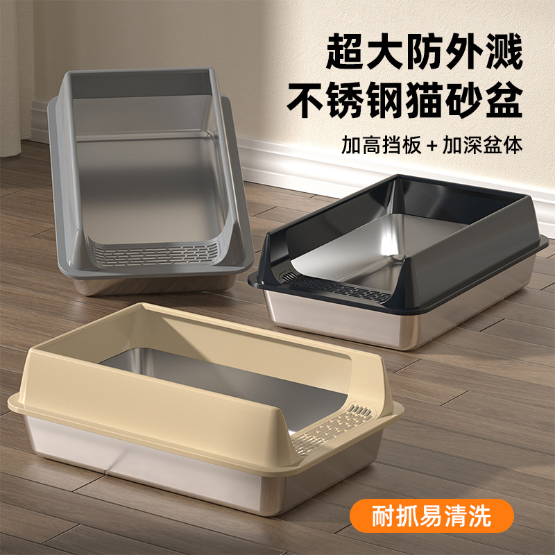 Kotak kotoran kucing stainless steel lintas batas ukuran besar ruang anti mengeluarkan anti cipratan luar