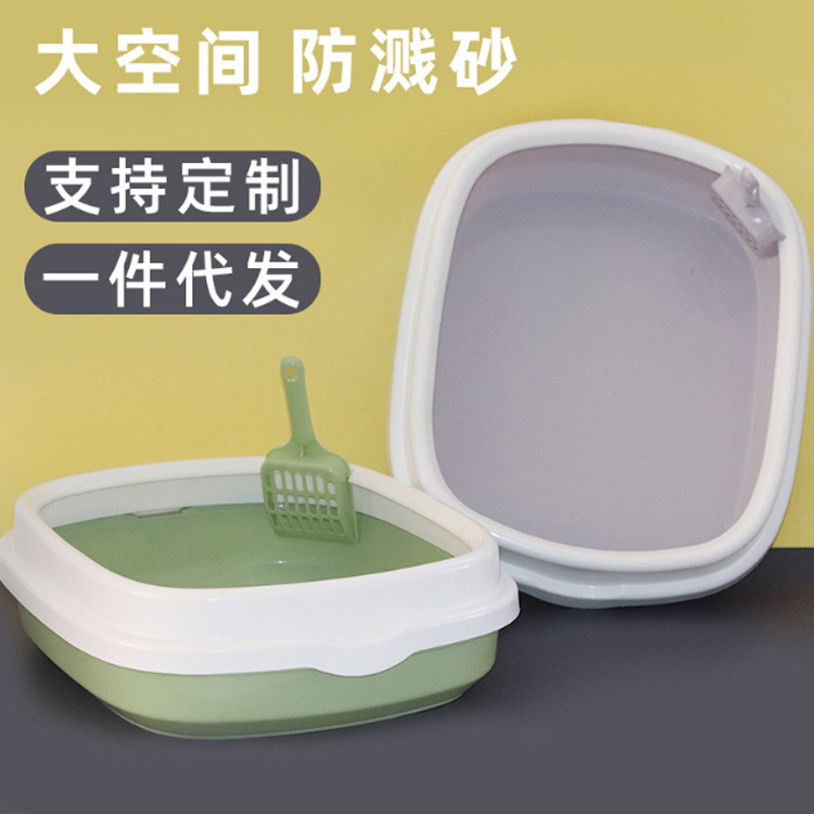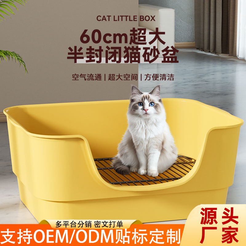 Kotak sampah kucing semi-tertutup tebal berukuran besar perlengkapan hewan peliharaan toilet kucing kucing terbuka kotak sampah kucing grosir lintas batas
