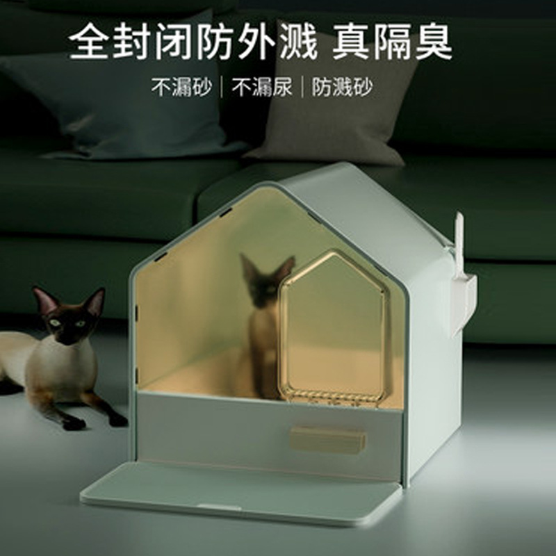 Kotak kotoran kucing toilet kucing semi-tertutup dipertebal antipercikan besar ruang hewan peliharaan penjualan langsung pabrik