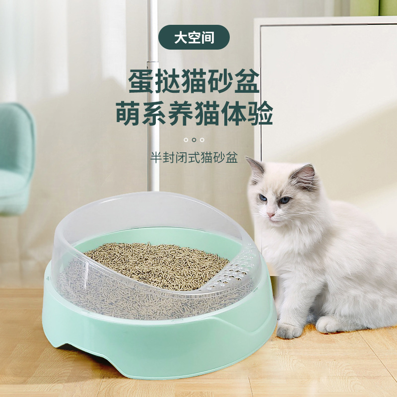 Kotak sampah kucing kapsul baru, perlengkapan kucing hewan peliharaan, kotak sampah kucing plastik, toilet, antipercikan, semi tertutup, kreatif, kapsul