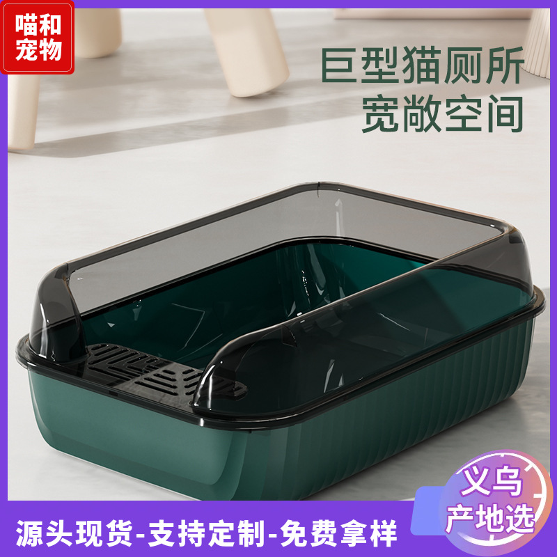 Kotak sampah kucing ukuran besar anti-cipratan semi-tertutup toilet kucing terbuka bak kotoran kucing raksasa